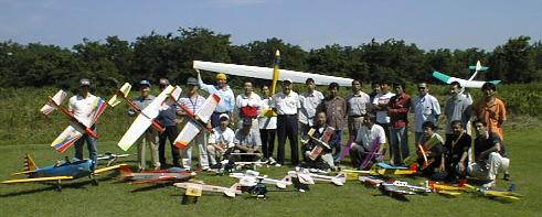 クロスウインド飛行場にて2000年夏の電動機の集いが開催されました。前日の台風の通過により開催が心配されましたが、当日は以下の写真からも想像できるように澄みきった青空の中、天候に恵まれました。午前中は台風の通過により北風がちょっと強かったですが、午後には徐々なくなりました。が、逆に強い日差しとでとても暑い1日となりました。参加者は20数名で、今回はアピール飛行等はなしく、のんびりと自由飛行の1日となりました。
