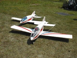 北村さんとDB−5(前)と杉谷さんのDB−5(後)です。同じキットです。ダクト機ではなくプッシャータイプです。