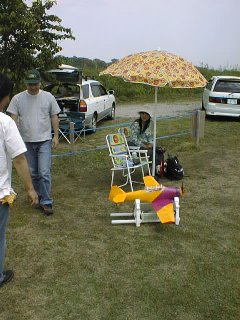 最初は屋根の分部にユニットを設けたそうですが、手投げ後に前にクルリと飛ばなかったそうです。で、今回は下にユニットを移動しての挑戦でしたが...結果は最高にウケてました。今回の爆賞(笑)です。垣内さんがムービ(CD)で提供していますので、そちらで見て下さい。